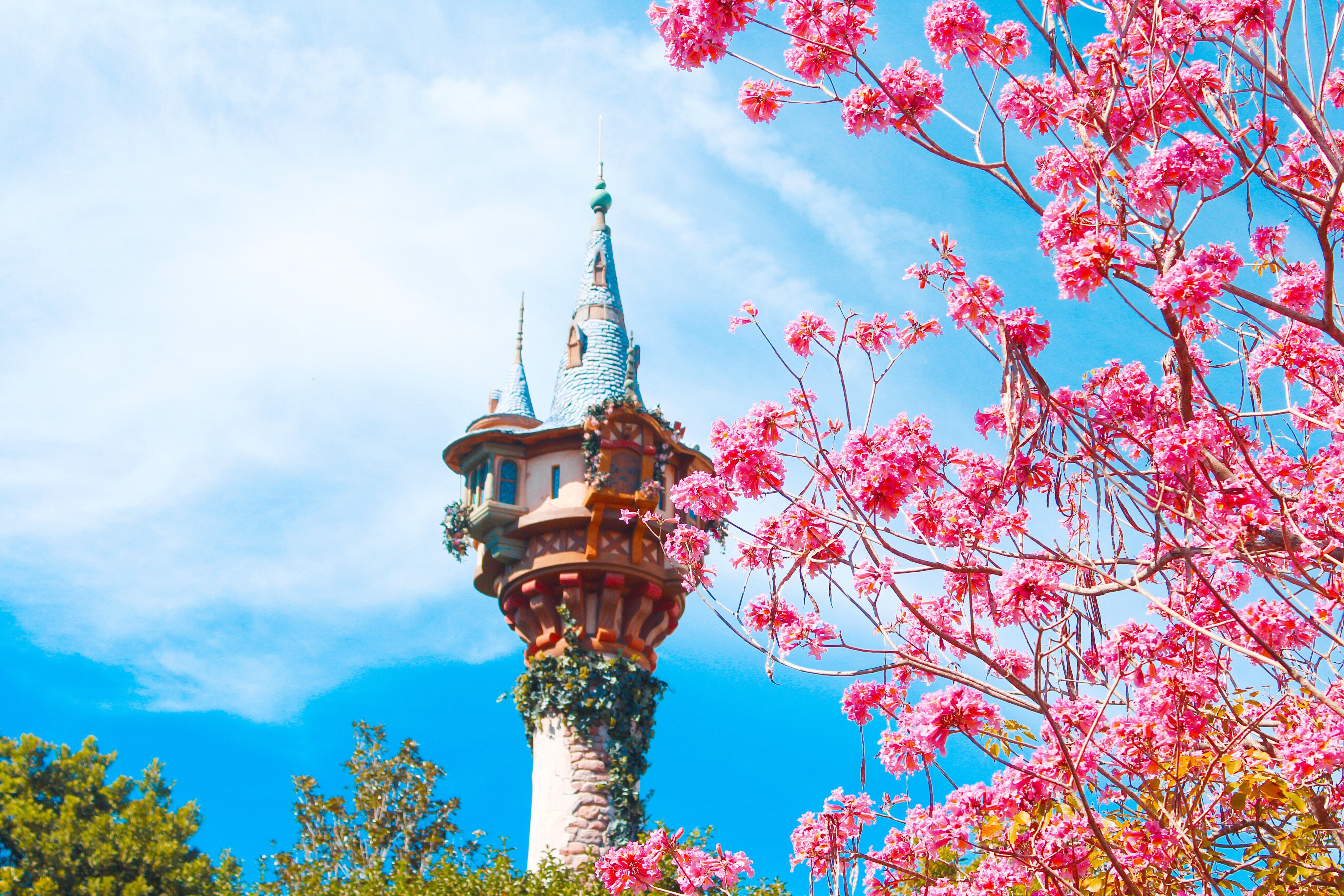 During the day, I always make it a point to stop by to see Rapunzel’s Tower. This area is incredibly beautiful, especially due to the Eastern Redbud tree that is blooming during this time of the year! As day turns to dusk, this area is still just as beautiful. There is a popular picaresque PhotoPass spot during the night-time where you can take a photo with one of the lanterns from the film. This is definitely a great way to save that memory of a fun-filled day at Magic Kingdom.