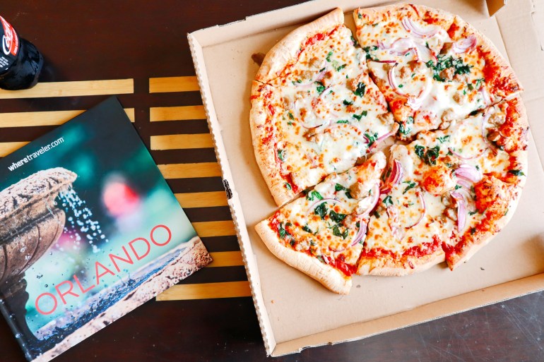 Our stay was full of things to do! From grabbing a bite to eat from the new pizzeria on site, taking a luxurious nap after said delicious pizza, heading over to Magic Kingdom for a date night and then waking up to a fun filled day at Aquatica, Seaworld’s water park, the fun never stopped! Before I get ahead of myself, let’s talk about that life-changing pizza real quick! Alberto’s Pizzeria is the newly refurbished cafe at the resort and it’s where you can create your own pizza, drink as much caffeine as your heart desires from the on-site Starbucks or snag a couple of quick and easy snacks to bring back to your room! We created our own pizza with sausage, onions and spinach leaves and it was extra delectable. Daniel and I agreed that this was one of the best pizzas we had ever had and would go back even if it’s just to grab a quick slice!