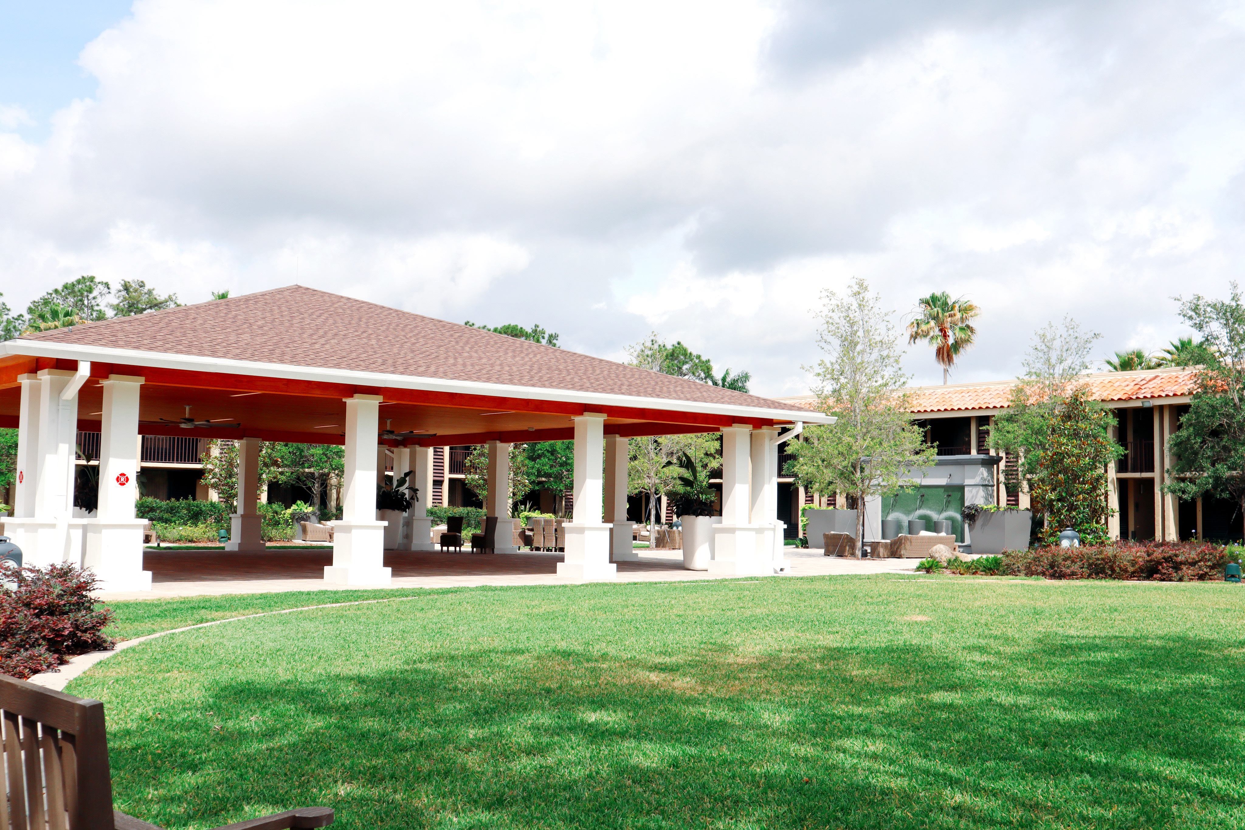 During our stay we were given a full tour of the grounds and we were really able to take in the full resort! Twenty-six acres is quite a bit of ground to cover, but everything was easily walk-able and even the “farthest” room was close to the large lobby. A lush garden walk-about covered every inch of this resort and showcased the natural beauty of the Florida landscape. One of my favorite areas was a large promenade that is a newly refurbished area where a vast array of events could be held, such as weddings, events, business meetings, and more! They had thought through every little detail with an open air area covered in a type of AstroTurf which is especially thoughtful to those of us that may be wearing heels to any events! The other side of the promenade had an enormous covered open air pavilion that is perfect for an event that needs a bit of shade from our friendly Florida sun!