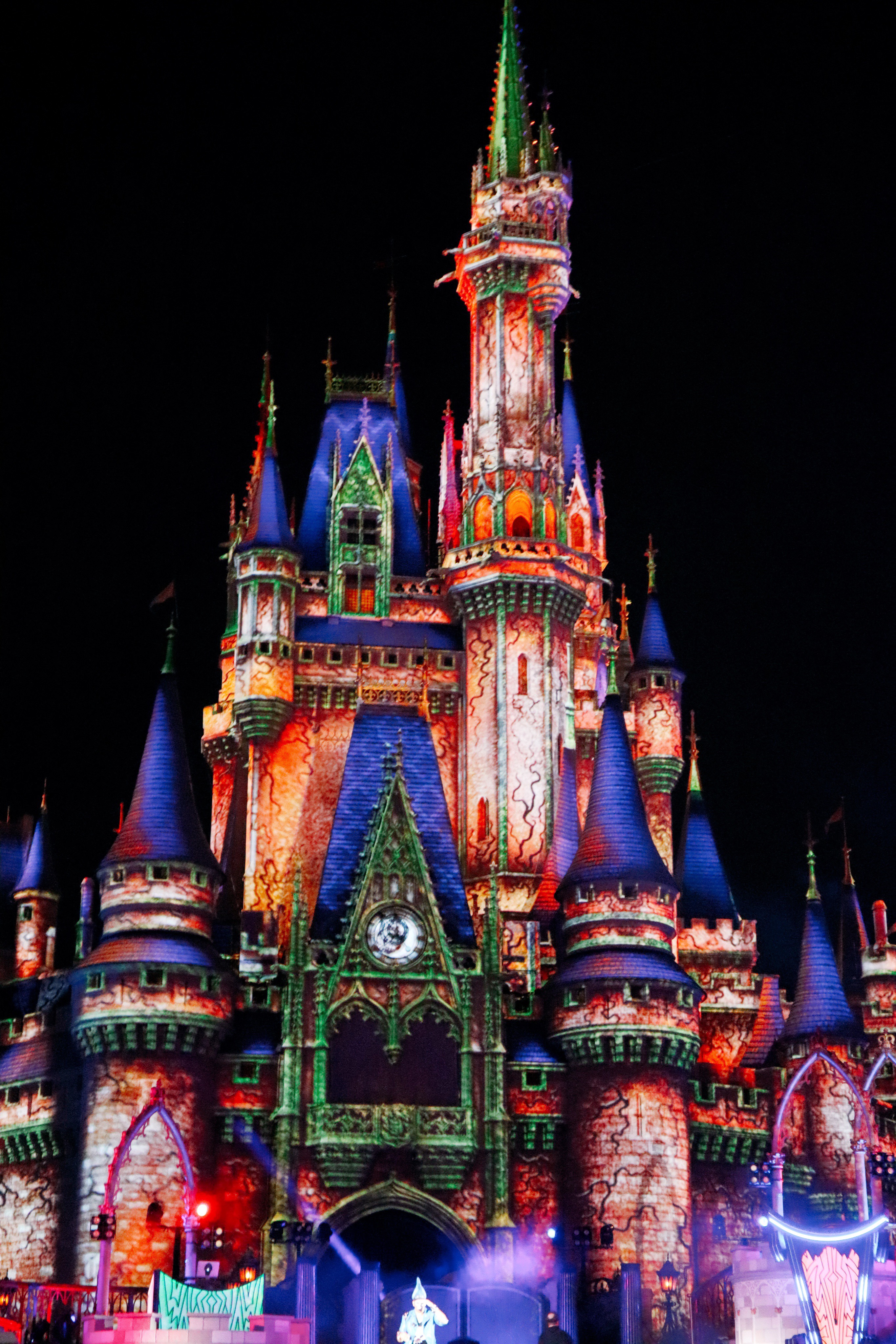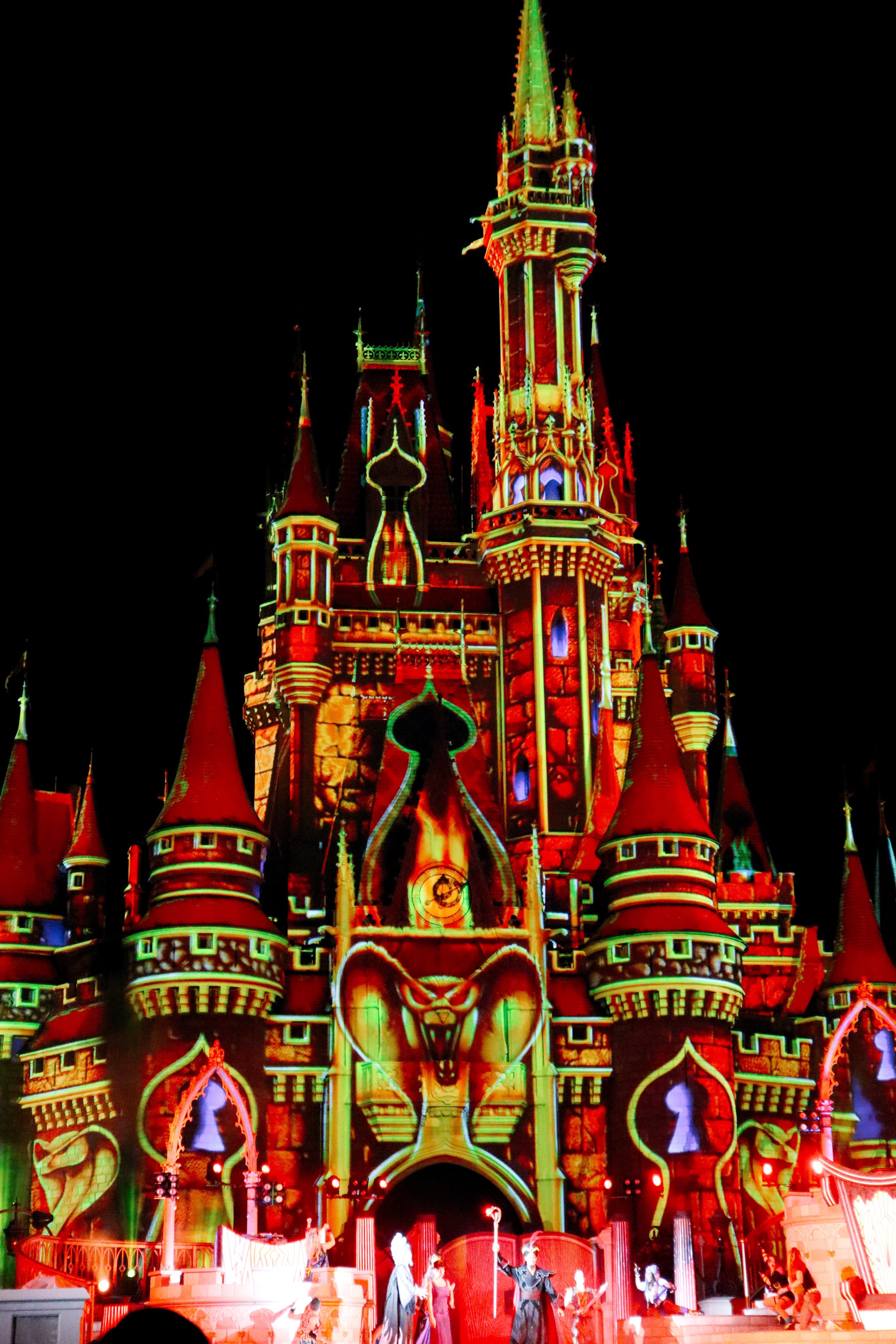 Another fantastic extension into the Villainy is the new stage show debuting alongside this event, “Villains Unite the Night” featuring Hades, Meg, The Queen, Maleficent and Jafar at Cinderella’s Castle. I honestly could not believe the amount of detail that went into this stage show. The castle projections were next level amazing and completely mesmerizing. It was so exciting to see Cinderella’s Castle transform from Hades deathly lair to Dr. Facilier’s Shadowland in just one easy transition. I honestly loved all of the different themes on the castle, but I had my favorites aka Dr. Facilier and Maleficent! I know I have said it already, but THE DETAILS?!